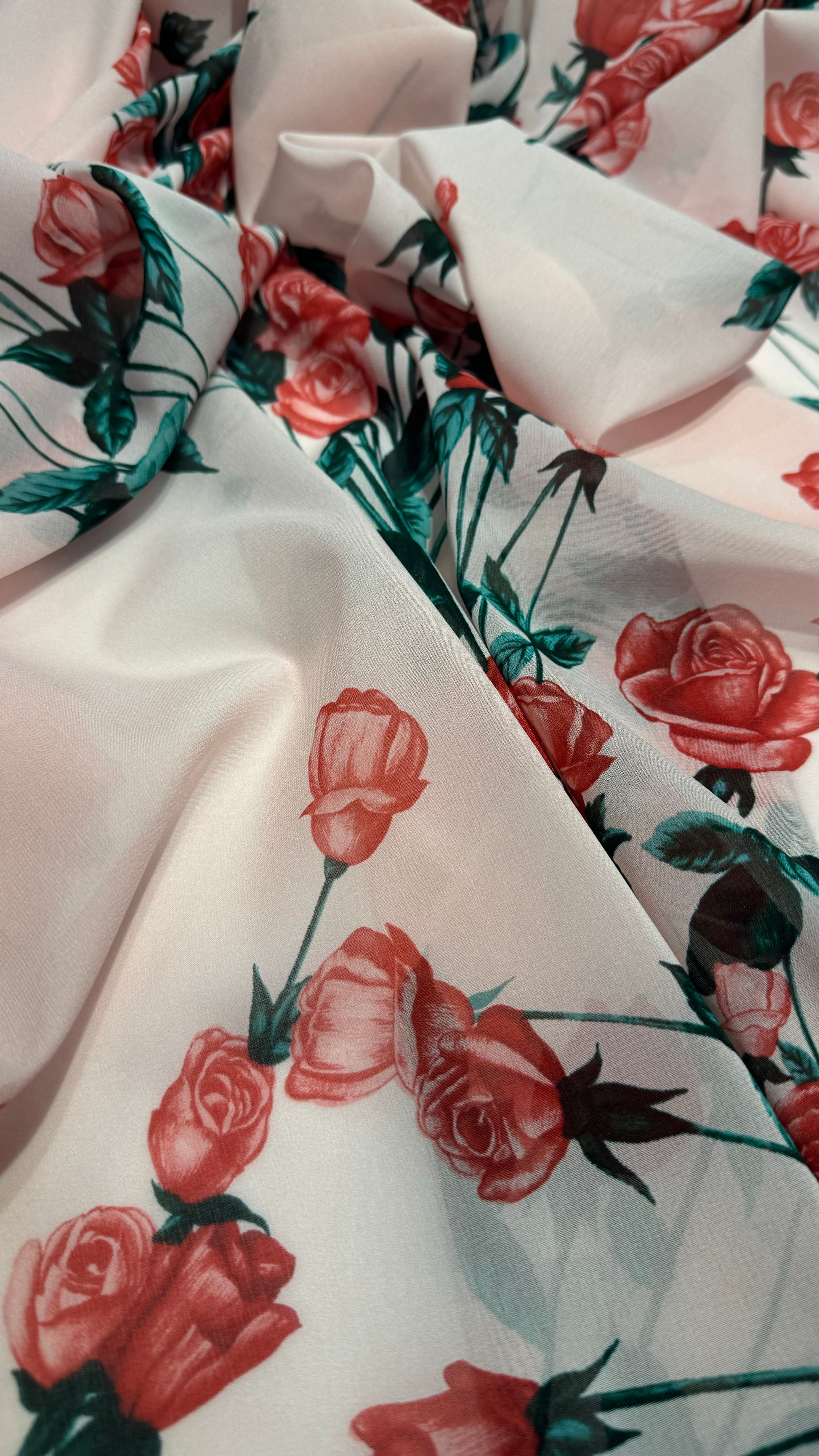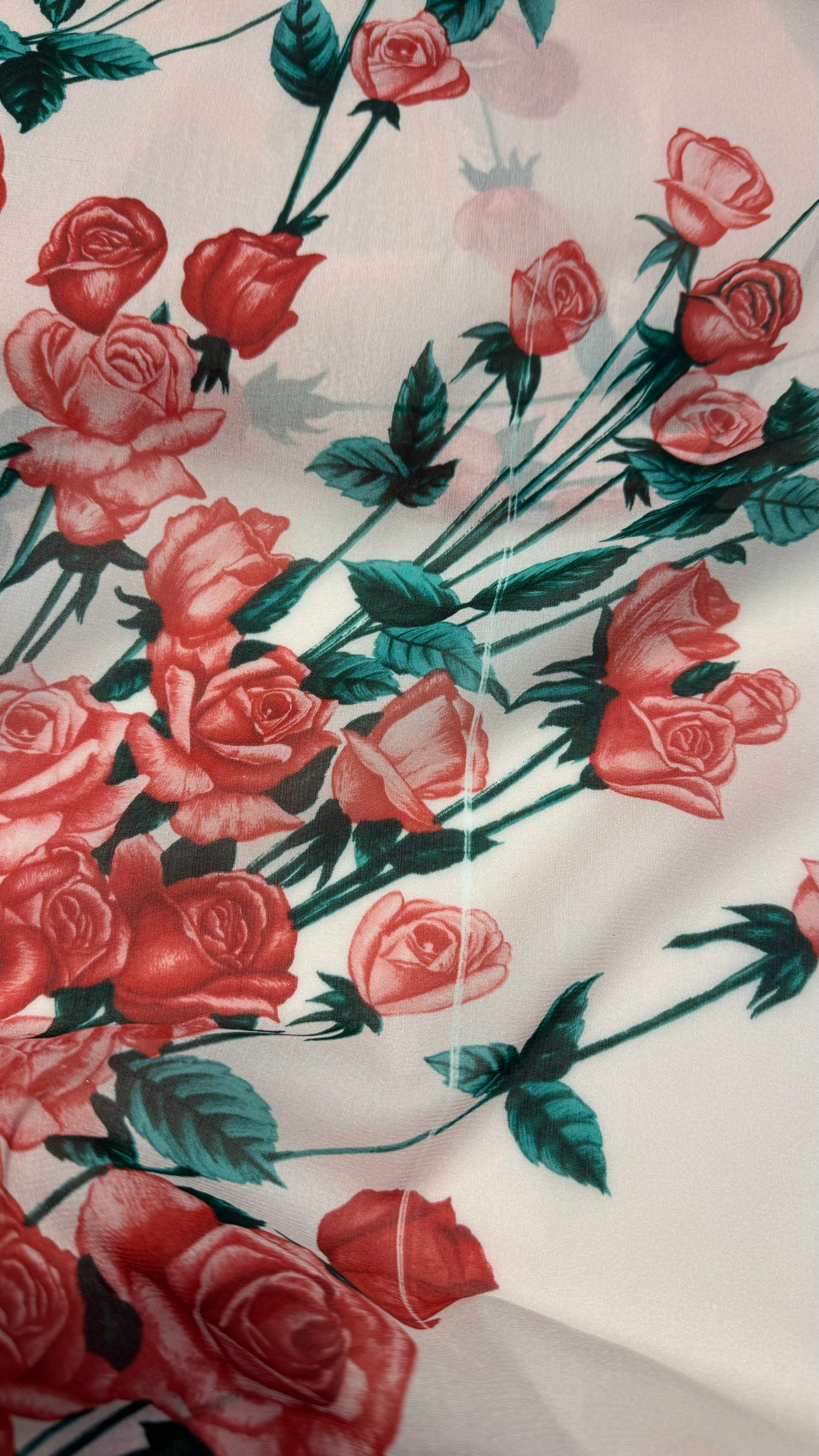 القطعه بها عيب مصنعي بسيط خط ابيض في الطباعه موضح في احدى الصور ويمكن تفاديها اثناء الخياطه كما ان القطعه 4 امتار تباع بسعر3 امتار